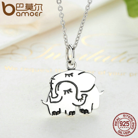 BAMOER .925 Sterling Silver. Elephant pendant necklace.